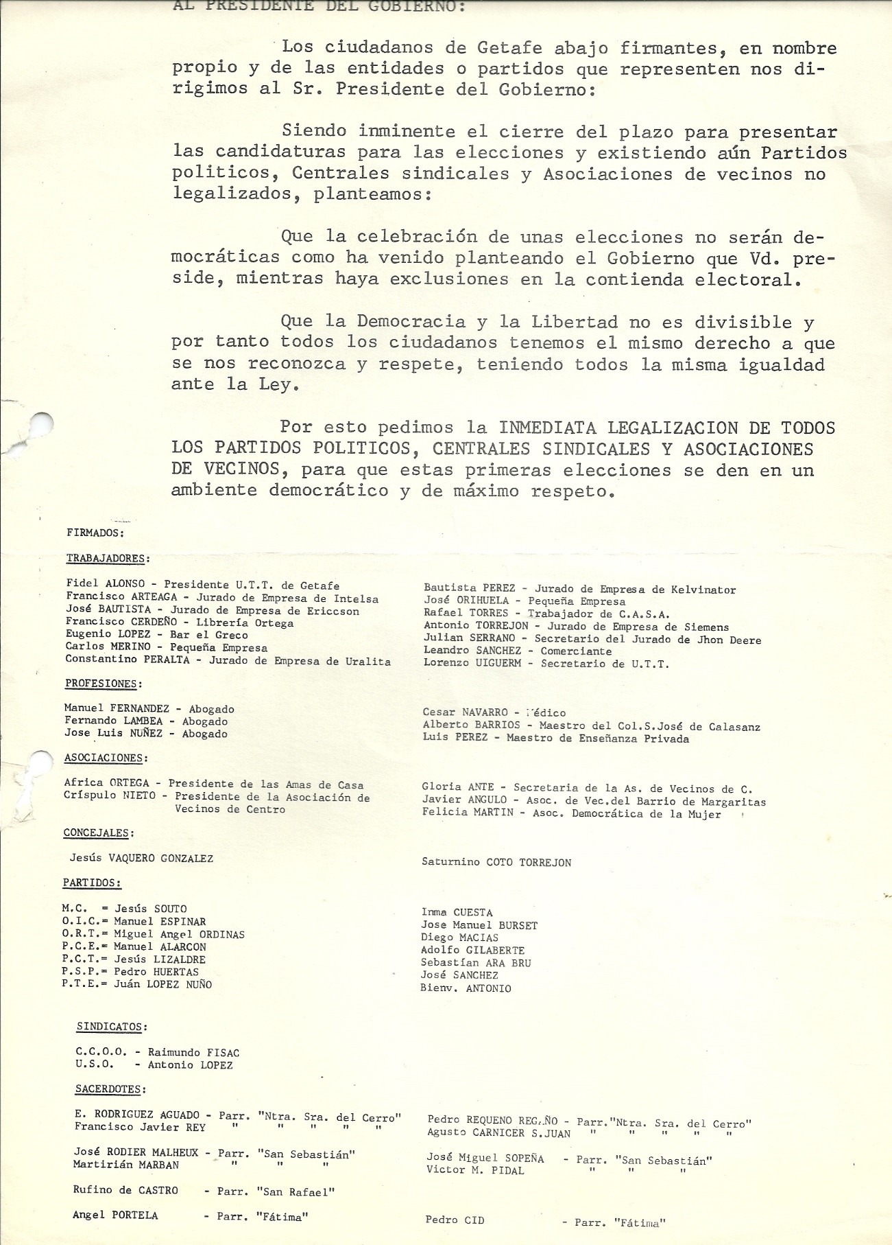 Hitos relevantes de la historia de la lucha por las libertades en Getafe en la década de 1970