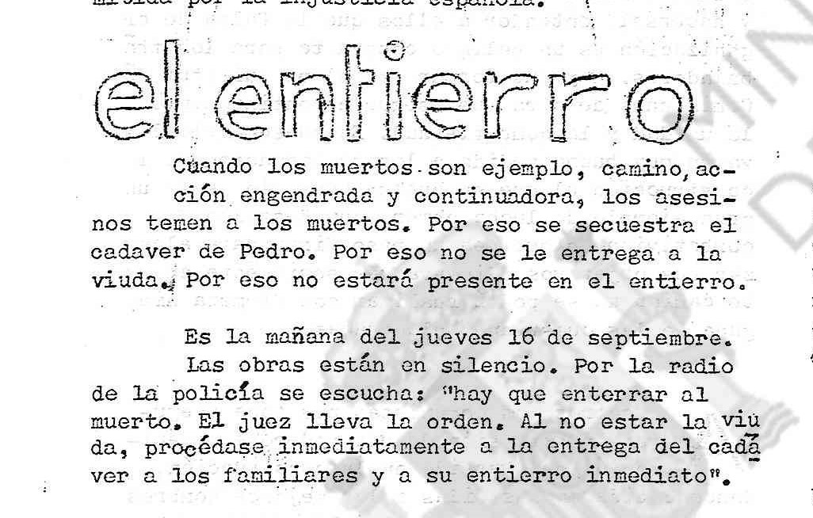 A pesar de intentar enterrarle casi clandestinamente y estar el pueblo tomado por la policía, los vecinos intentan llegar al cementerio y son disueltos a culatazos por la policía que se encuentra ansiosa ante tal movilización popular.