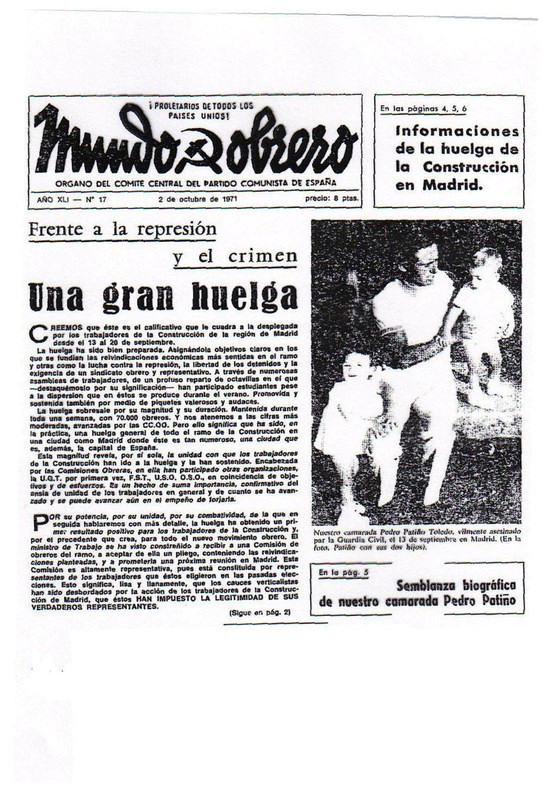 El 13 de septiembre de 1971 fue el primer día de una huelga clandestina del sector de la construcción en Madrid, que se prolongaría hasta el día 19 del mismo mes. Ese día, en un reparto de propaganda por las obras del futuro barrio de Zarzaquemada de Leganés, la Guardia Civil tenía marcado su objetivo. Iban tras sus pasos, la mano de uno de sus números empuñó el arma, y Pedro perdió la vida. Así, marchó para siempre un trabajador sencillo, un sindicalista más, asesinado por defender sus ideas.