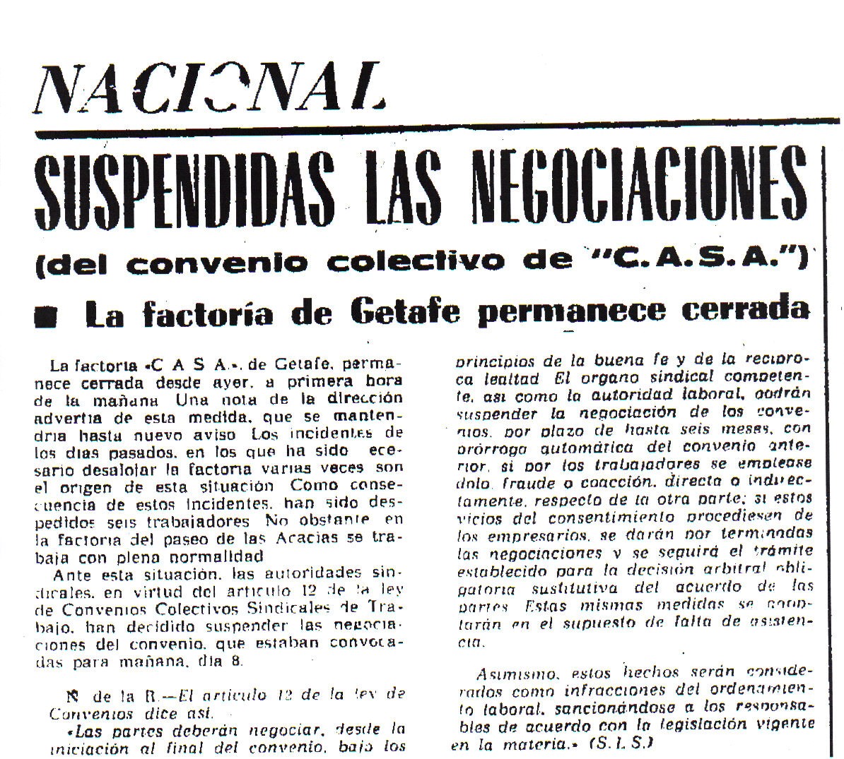 A la cabeza de esa huelga general se sitúa CASA que inició la lucha en diciembre del año anterior y será militarizada el 23 de enero.