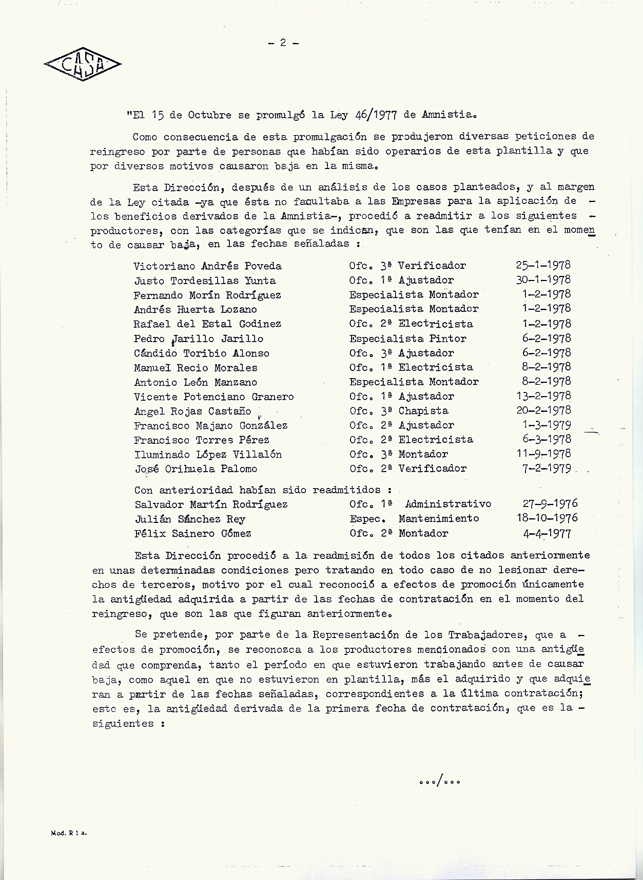 - Readmisión de los despedidos